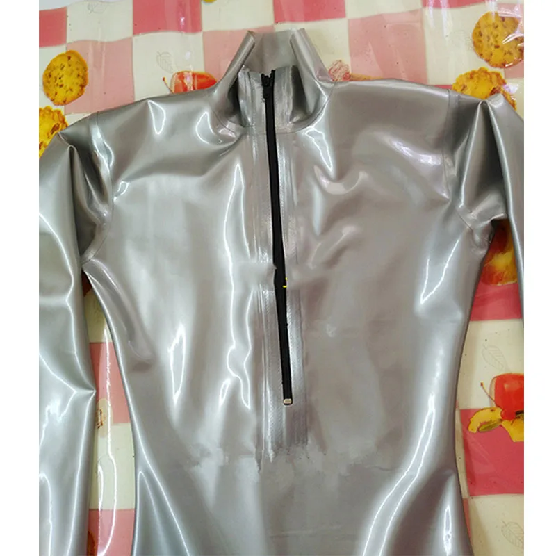 Боди мужское латексное серебристое с застежкой-молнией сзади, для к...