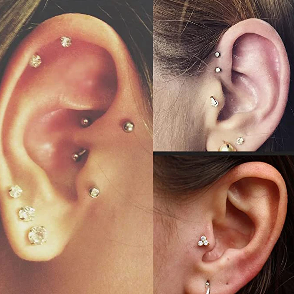 16G вперед спирали серьги из нержавеющей стали, серьги на козелок серьги-гвоздики Нержавеющаясталь и прозрачный гибкий кольца губ губная серьга шпилек пирсинг Монро