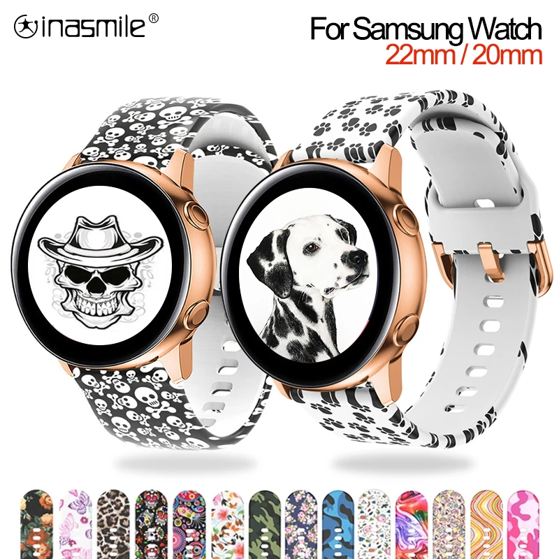 Силиконовый браслет с принтом для Samsung Galaxy watch 3, 41 мм, 45 мм, 42 мм, 46 мм, Gear S2, S3, Active 2, 1, ремешок для умных часов, 20 мм, 22 мм