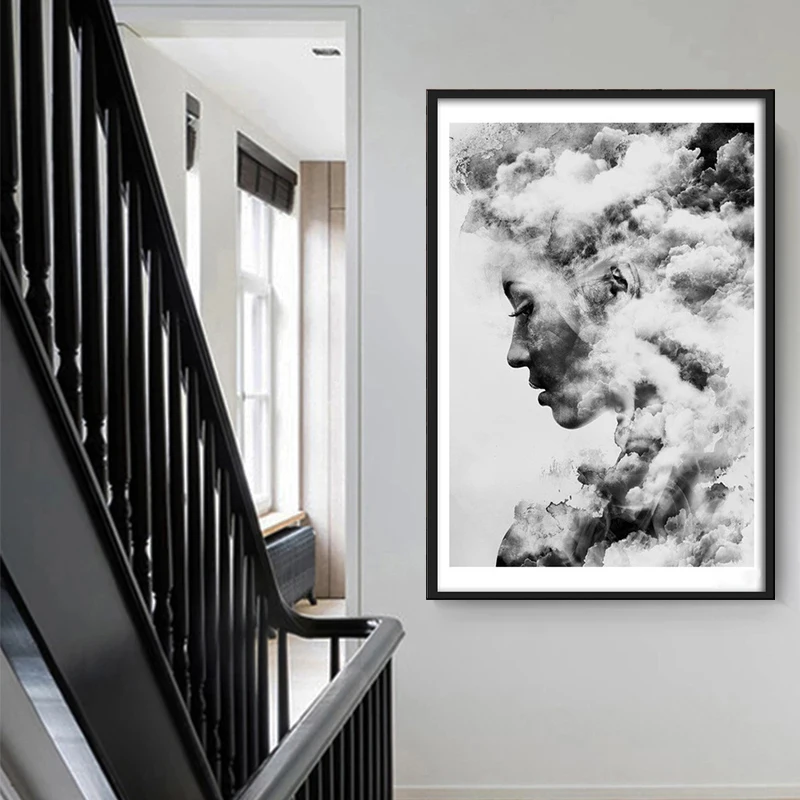 Черно-белая современная Женская ПОРТРЕТНАЯ ФОТОГРАФИЯ стены абстрактная картина для гостиной домашний декор квадраты icon star icon star icon star icon star icon star