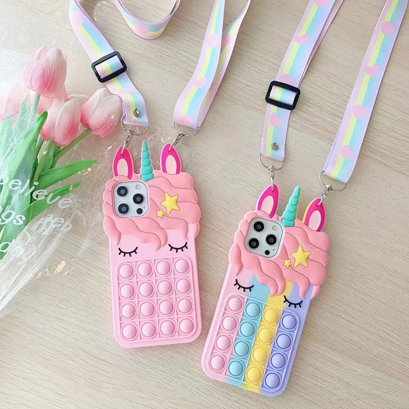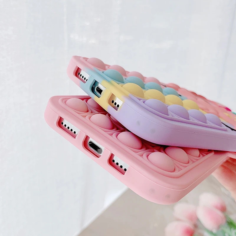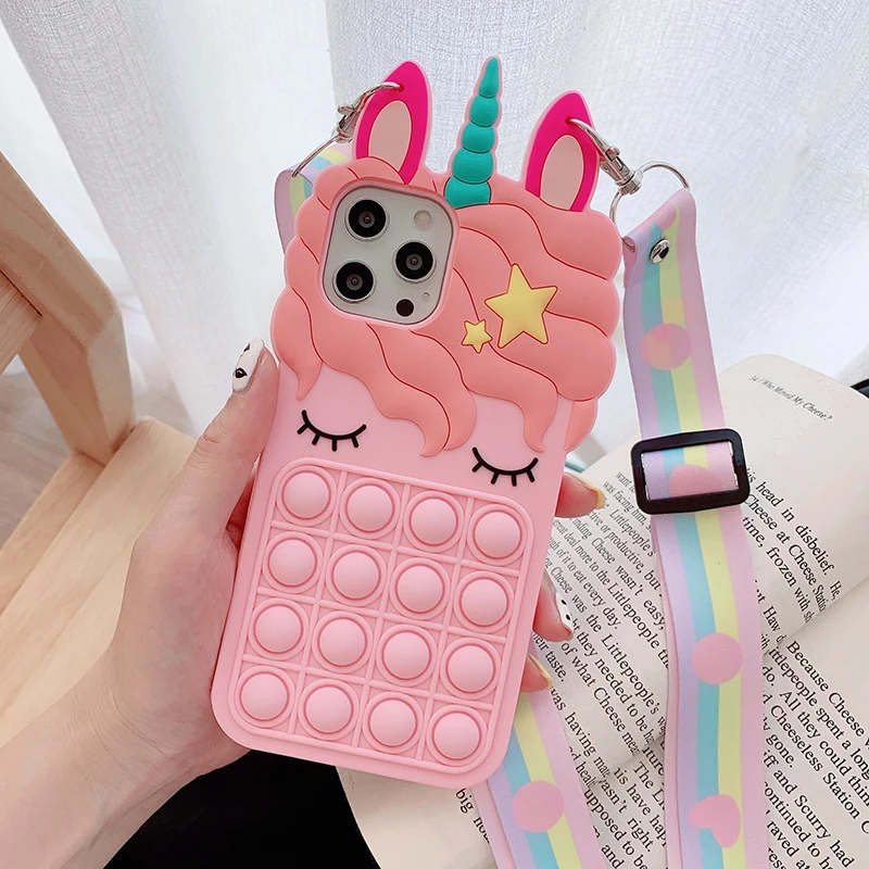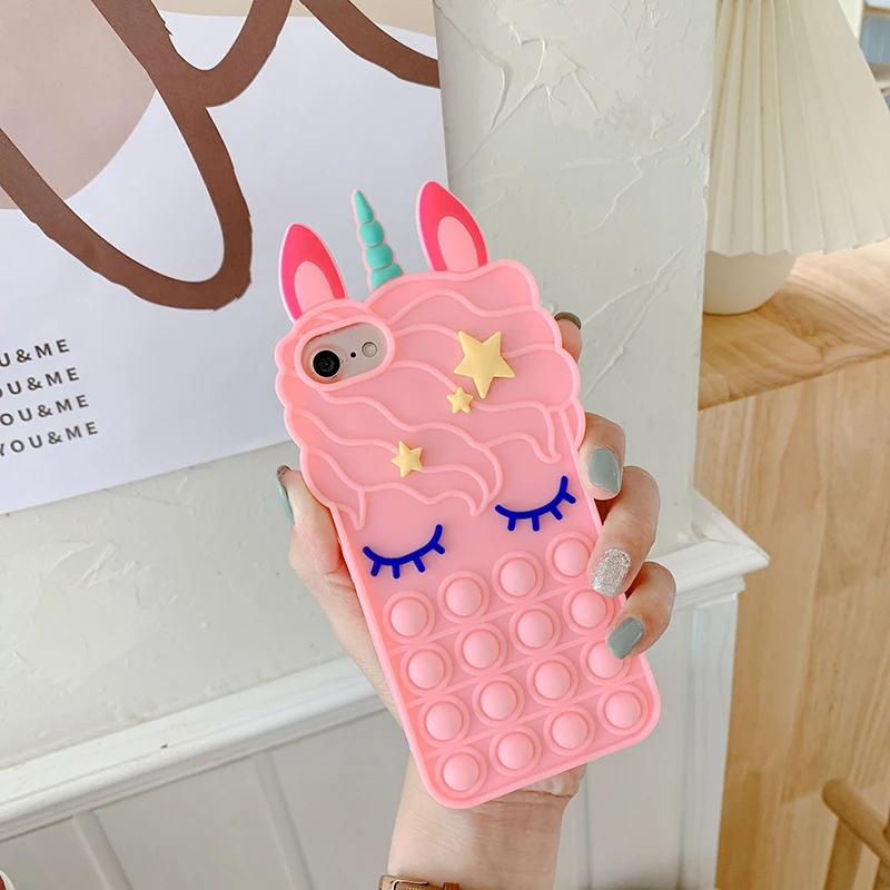 Силиконовый чехол Fidget Toys Push It Bubble для iPhone 11 12 Pro Max 6s 7 8 Plus X XR XS Max 3D с мультяшным розовым единорогом, мягкий чехол