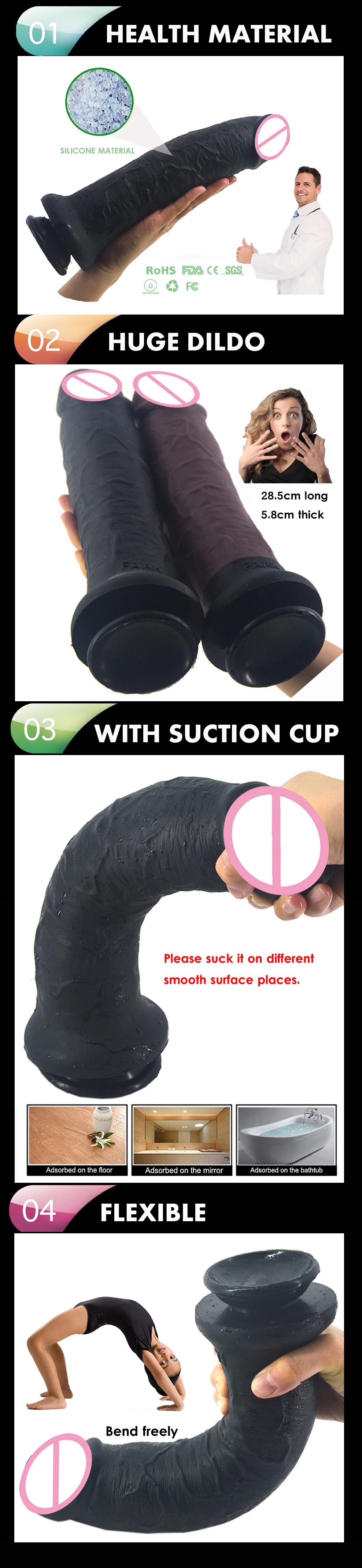 11,2 дюймов огромная силиконовый дилдо супер длинный реалистичный пенис с присоской большой член для стимуляции вагины для флирта прочного, товары для взрослых