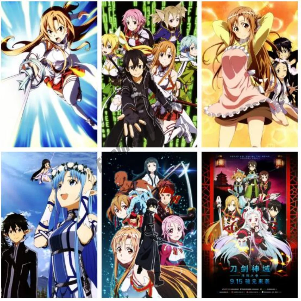 Меч искусство онлайн Аниме Холст Картина кирия и Тото Кирито Асуна настенное искусство скандинавские плакаты и принты картины для декора комнаты