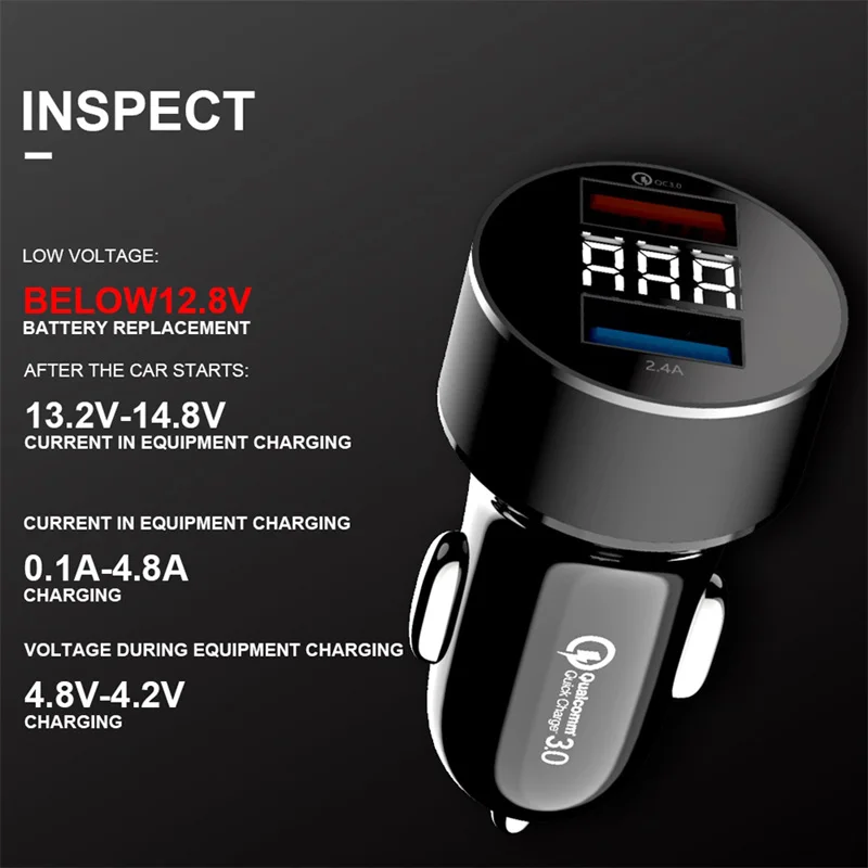 Автомобильное зарядное устройство QC3.0 + 2.4A с двумя USB-портами,...