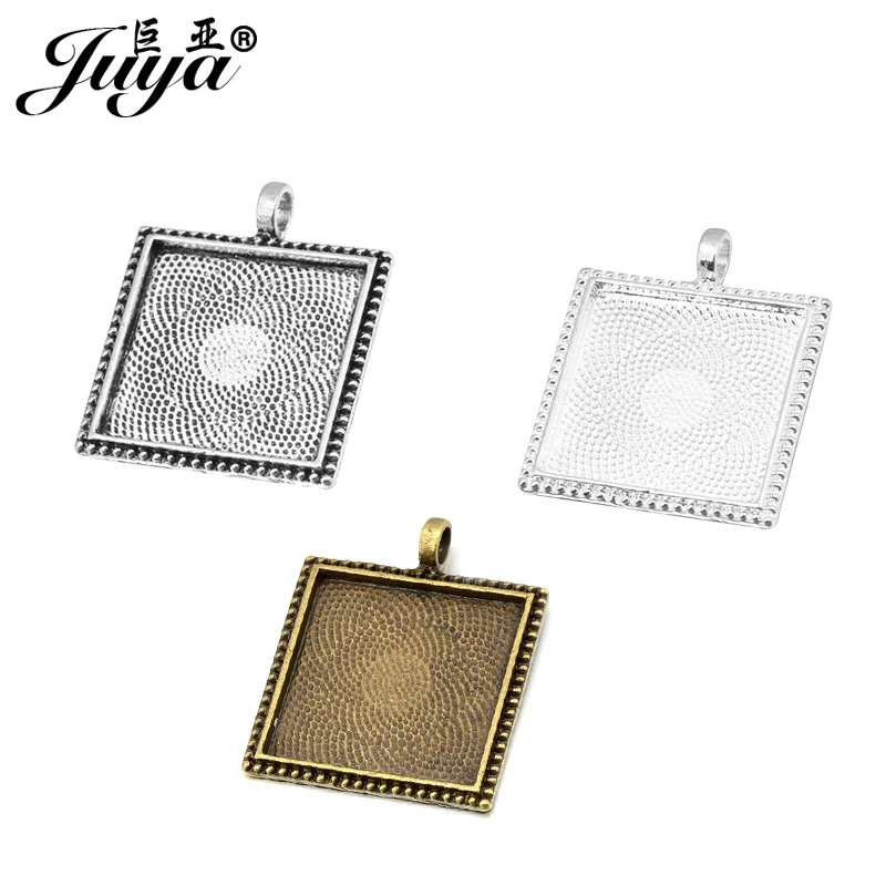 30 шт. квадратный кулон кабошон основа 25 мм металлический сплав Пустой Лоток Подвески для изготовления ювелирных изделий Аксессуары ожерелья или брелоки компоненты оптовая продажа