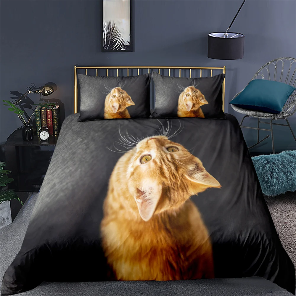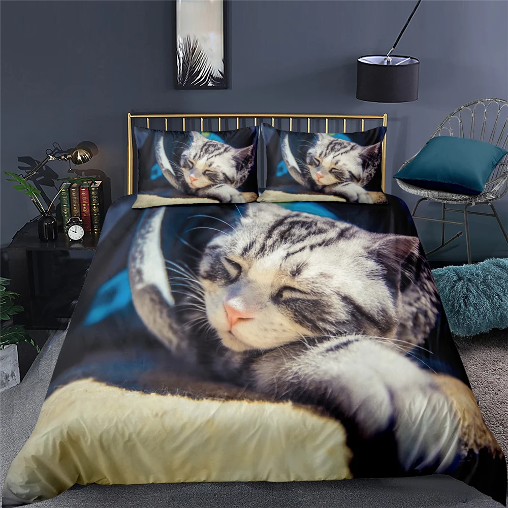 Комплект постельного белья, с мультяшным принтом, мягкий, с изображением кота, стеганое одеяло с котенком, для детей, для спальни, 90, односпальный, двуспальный, большого размера
