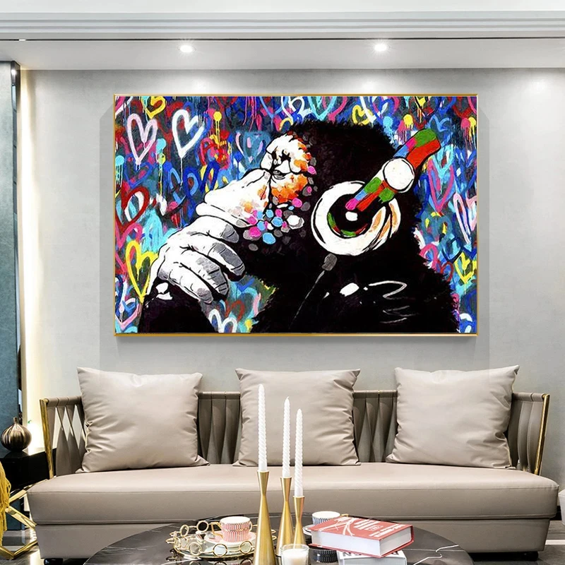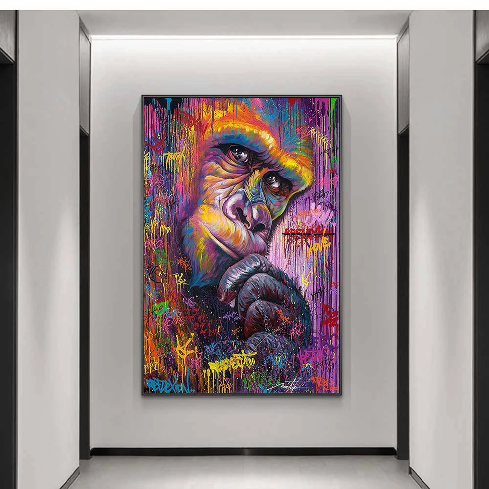 Граффити красочные животные Холст Живопись Искусство Милая обезьяна плакаты и принты роспись стены картины гостиная украшение для дома