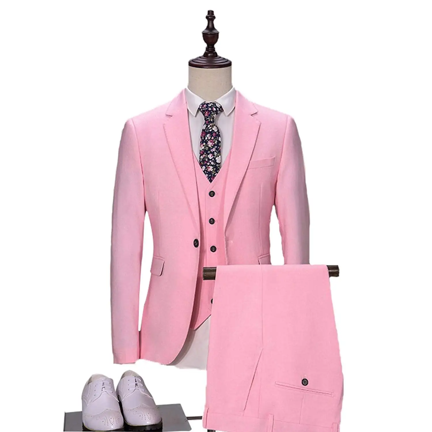 Новое поступление, модный мужской костюм из 3 предметов (пиджак + брюки + жилет), розовый 2022, облегающие Свадебные смокинги для мужчин, костюм для мужчин, свадьба