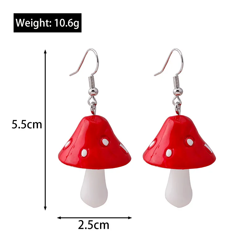 Серьги-подвески в виде грибов женские, смешные милые пластиковые се...