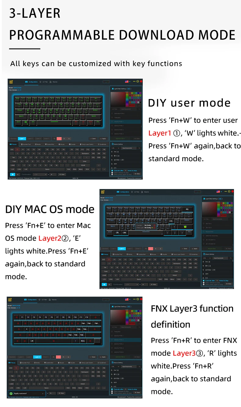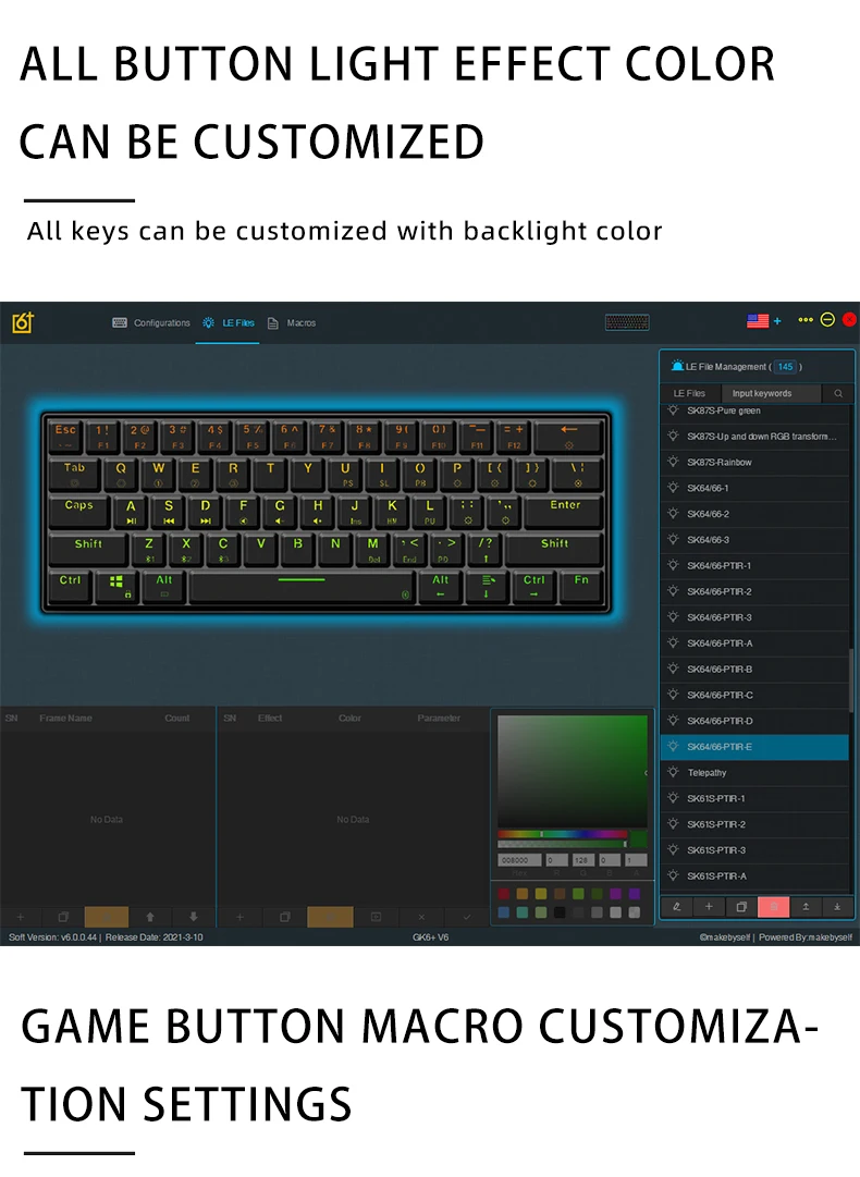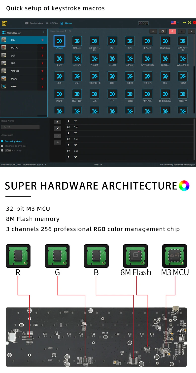 1. Светильник DIY2. Мощные игровые макросы3. Есть сотни эффектов на светильник, доступных для загрузки (непрерывное обновление)4. Программируемый полный ключ