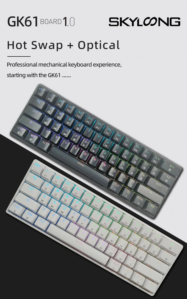 Механическая игровая клавиатура SKYLOONG GK61 SK61, проводная игровая клавиатура с желтыми клавишами Gateron Hot Swap RGB светодиодный светодиодной подсветкой, оптические переключатели