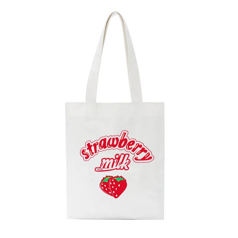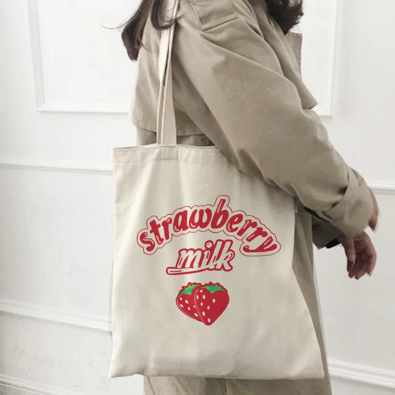 Новые парусиновые повседневные милые корейские женские вместительные сумки через плечо с клубничным принтом и надписью Harajuku Ulzzang