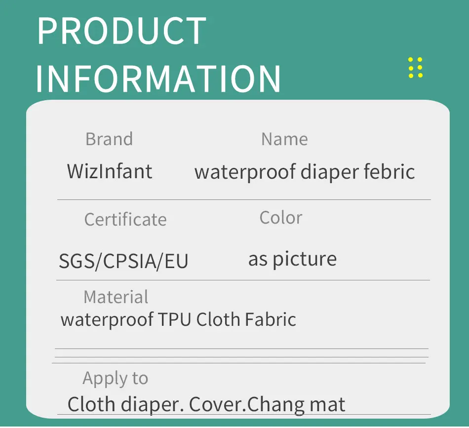 WizInfant 1 метр водонепроницаемая цифровая печать PUL Ткань моющийся дышащий ТПУ для ткани сумка для мокрых подгузников Сумка для подгузников