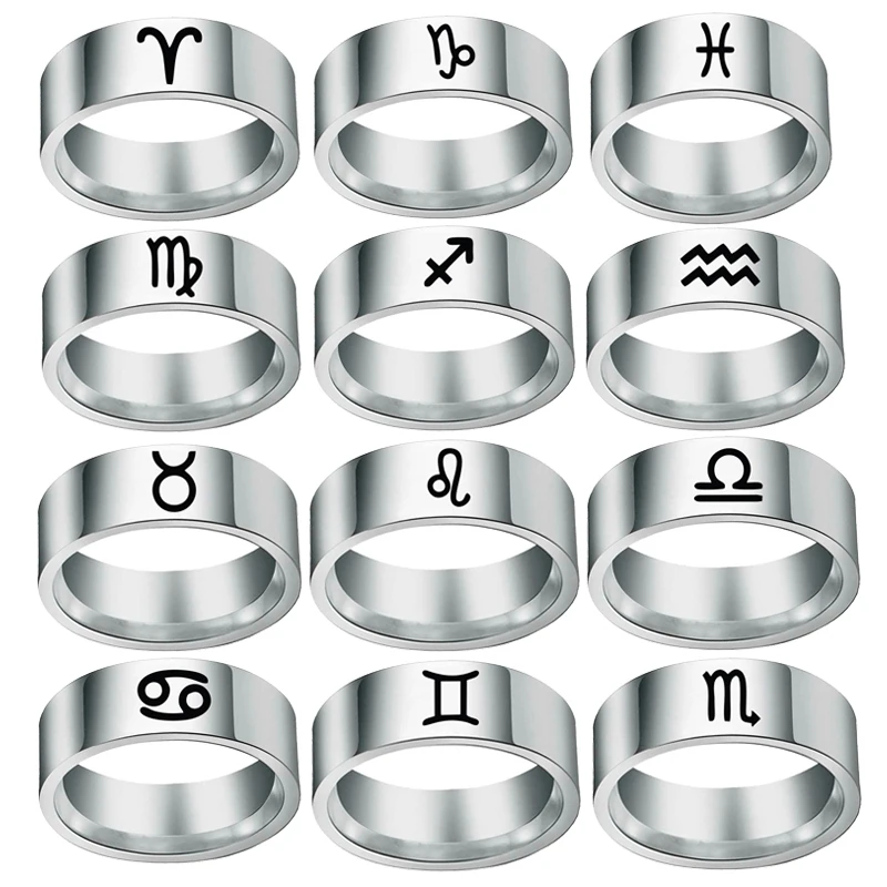 Телец близнецы из нержавеющей стали, 12 дюймов, зодиакальное кольцо дюйма, Телец, дева, весы, скорпий, Стрелец, Козерог, свадьба, стальные кольца ювелирные изделия