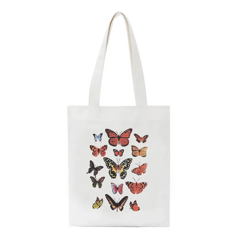 Женская винтажная Холщовая Сумка в стиле ольччан, шикарная Милая вместительная сумочка на плечо в Корейском стиле, в стиле Харадзюку, с принтом бабочки, лето