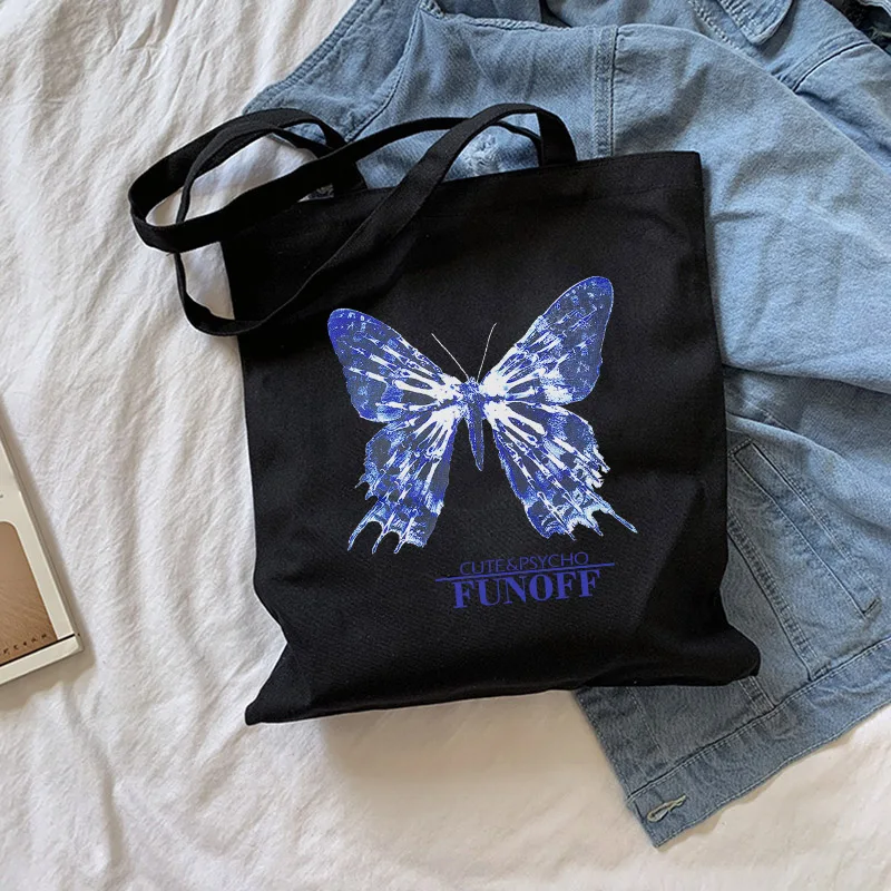 Холщовая Сумка в готическом стиле с бабочками, повседневная сумочка...