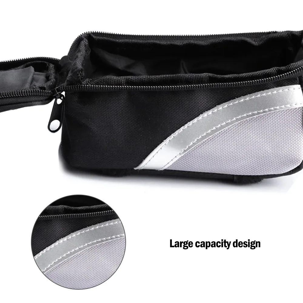 Особенности:-Изготовлен из ткани Оксфорд хорошего качества и абсолютно новый.-Он водонепроницаемый, с точным прикосновением и отличной чувствительностью.-Дизайн на молнии, вы можете удобно снимать вещи.-Эта велосипедная сумка для телефона портативна, пригодна для носки и прочно прилипает и удобна для вас, чтобы вы могли заниматься спортом на открытом воздухе.-Подходит для горного велосипеда, городского велосипеда, дорожного велосипеда и т. д.