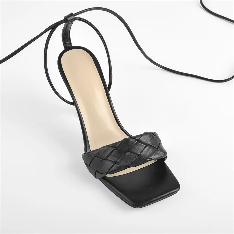 Женские босоножки Onlymaker, на высоком прозрачном металлическом каблуке, на шнуровке, матовые, черные, плетеные, универсальные