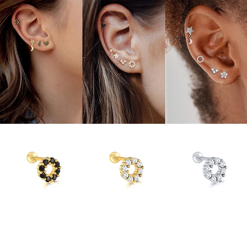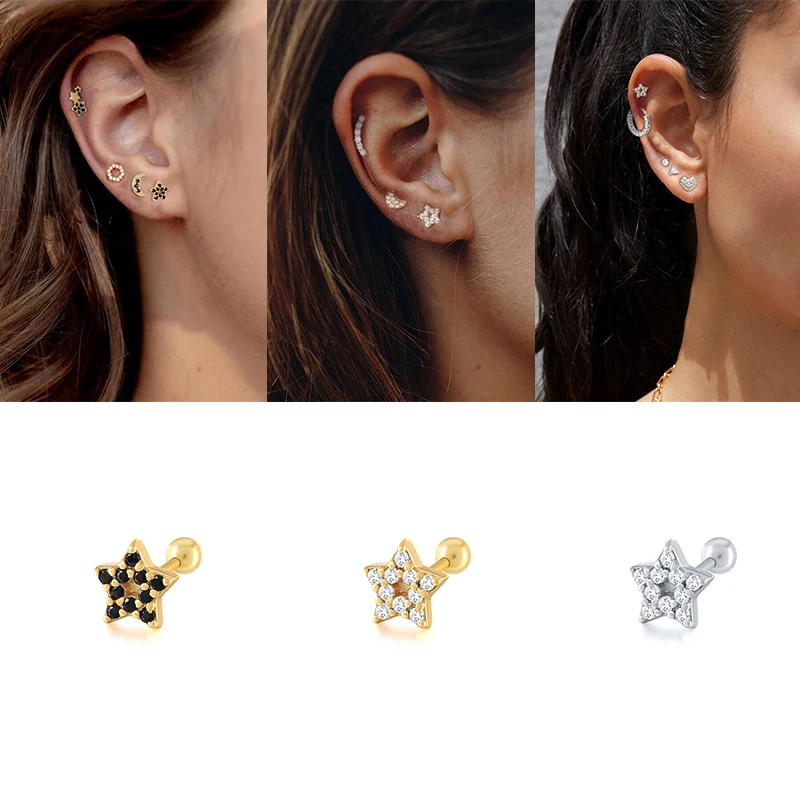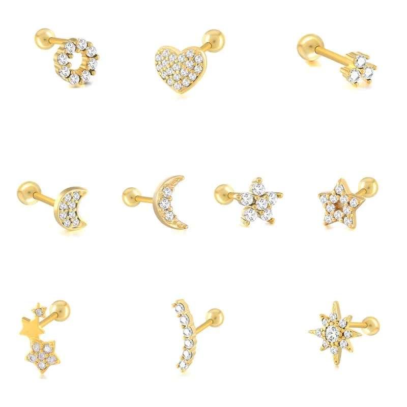 Автоклав реальные 925 стерлингового серебра серьги-гвоздики в форме спирали в форме сердца с изображением луны и звезд, пирсинг, серьги для женщин, ювелирные украшения из нержавеющей стали, бренд Aretes представляет, 1 шт.