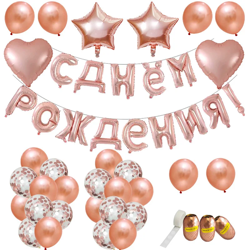 52 шт. розовое золото с надписью на русском языке фольгированные шары с днем рождения День рождения украшения с днем буквы шарики поставки