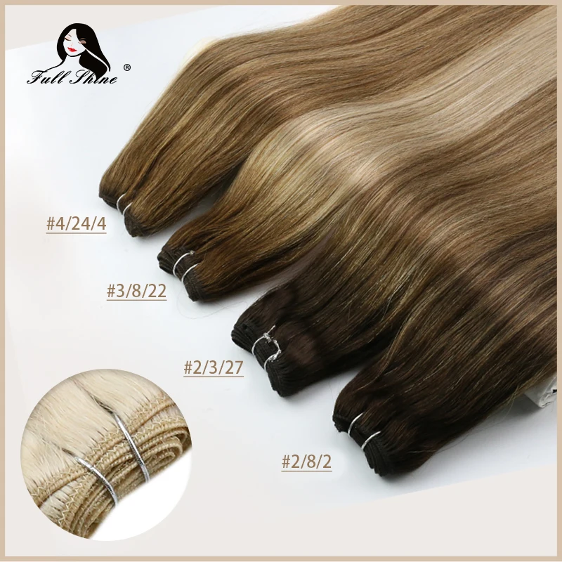 Полностью Сияющие пряди волос 100% человеческие волосы для наращивания Омбре блонд цвет 100 г сшитые шелковистые прямые волосы Remy Skin Double Weft