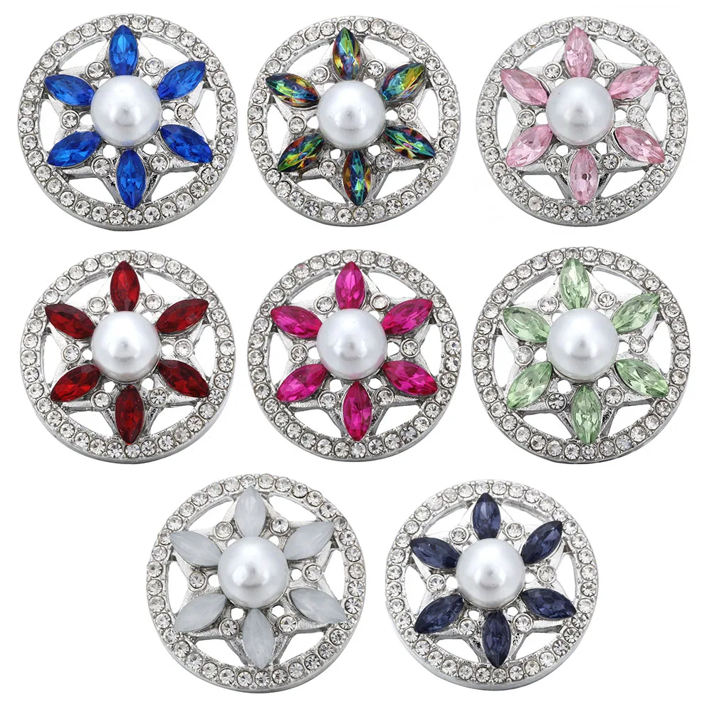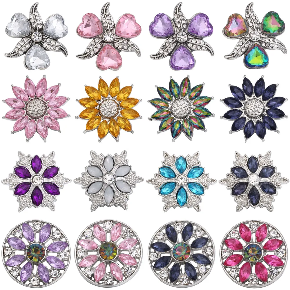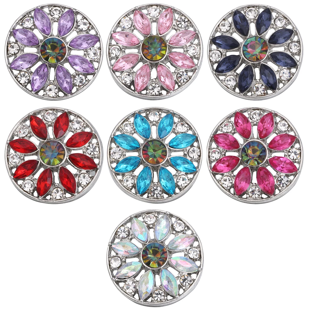 5 шт.лот оптовая продажа 18 мм кнопки ювелирные изделия DIY горный хрусталь цветок 18 мм 20 мм Металлические Кнопки подходят для браслета браслет