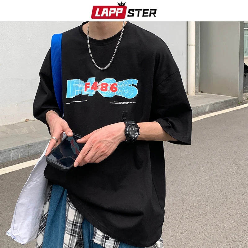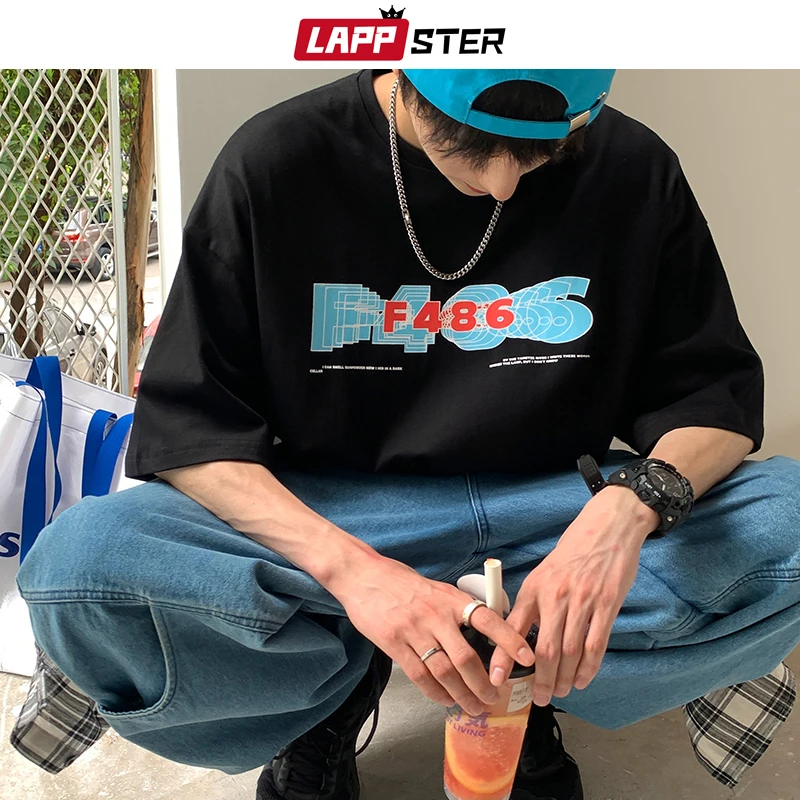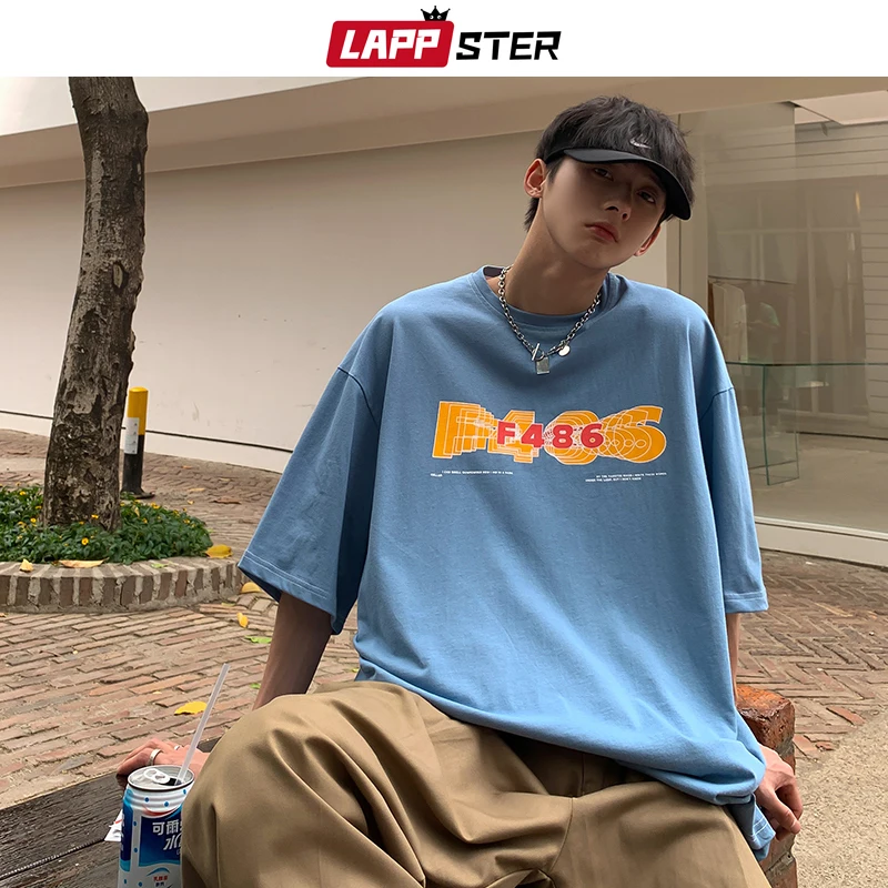 Футболка LAPPSTER F486 мужская оверсайз, винтажная уличная одежда с графическим принтом, свободная повседневная рубашка в стиле хип-хоп, в стиле Харадзюку, лето 2022