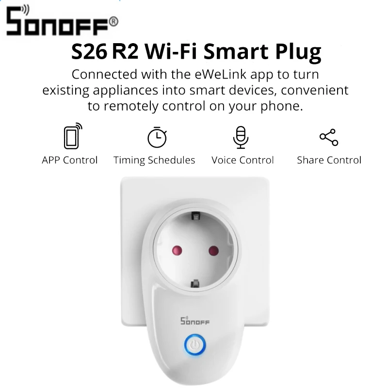 Смарт-розетка Sonoff S26 R2 с поддержкой Wi-Fi и голосовым управлением