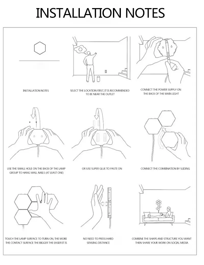 Примечание: независимо от того, сколько настенных ламп приобретено, по умолчанию будет отправлен только один источник питания.Характеристика:1. Это модульный сенсорный настенный светильник. Используйте шестиугольный флоппи-диск для создания любой структуры, чтобы удовлетворить ваши потребности, затем включите и выключите, прикоснувшись к нему.2. Быстрый модульный компонент эквивалентен системе, которая может легко адаптироваться к любому сценарию. Используйте магнитные края, чтобы соединить свет вместе, чтобы создать структуру, которая лучше всего подходит вашему интерьеру.3. Сдвиньте стену и Осветите тропинку для захватывающего тактильного опыта. Настройте уровни освещения, чтобы создать правильную атмосферу, освещая несколько плиток, которые вам нужны.4. Минималистский дизайн и уникальный геометрический дизайн не только освещают, но и украшают ваш дом. Широко используется, может быть помещен в гостиную, спальню, кабинет, ресторан, отель и т. Д.5. Сенсорный. Каждая лампа может управляться независимо, чтобы открыть и закрыть, не влияя на нормальное использование других ламп.Спецификация:Название товара: квантовые лампы с сенсорным датчикомФорма: ШестигранникВыходная мощность: DC12VТип вилки: штепсельная вилка США/ЕС/Великобритании/АвстралииВКЛ/ВЫКЛ: емкостный сенсорныйЦветовая температура: 6000K-6500K (белый)Входная мощность: AC110-220 в 50/60 ГцАксессуары для стен: резиновые прокладки или гвоздиМаксимальное количество компонентов для адаптера питания: 25 шт.