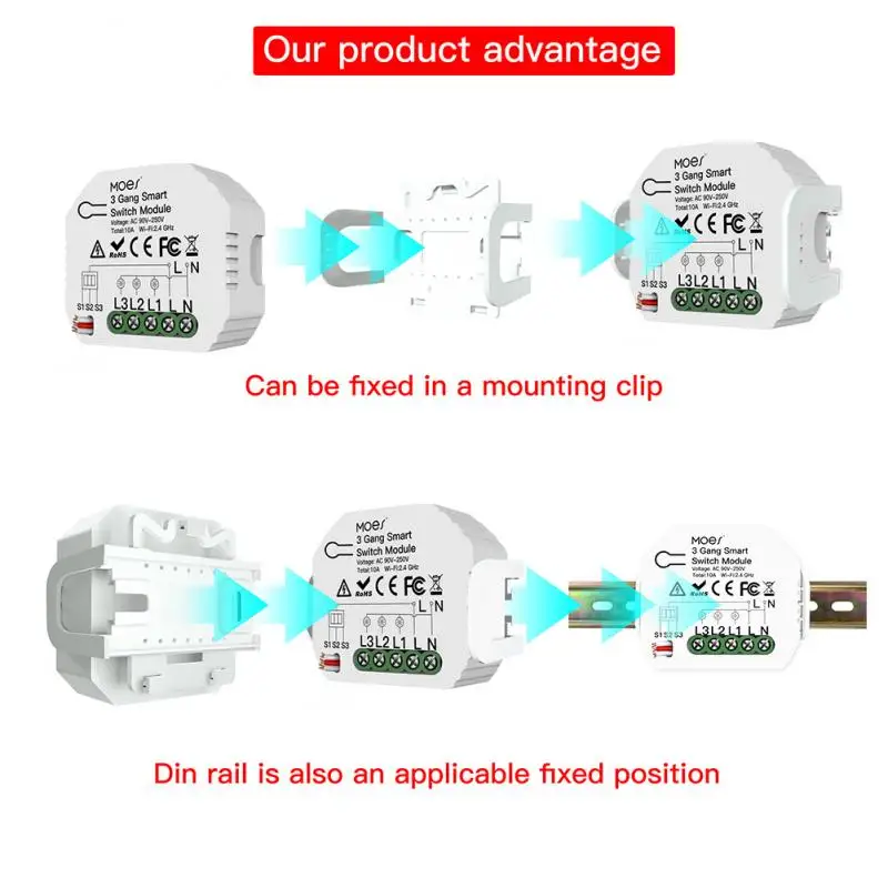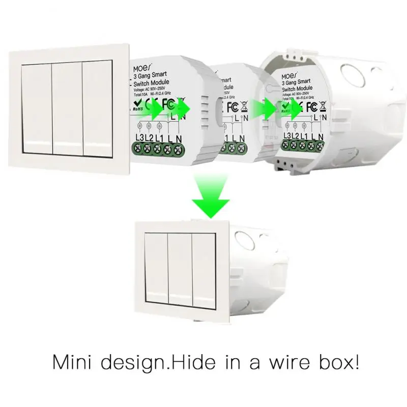 1. Умный модуль Wi-Fi с мини-дизайном подходит для настенных выключателей Великобритании и ЕС; Компактный размер позволяет легко установить без изменений в вашем домашнем декоре; Превращает совместимые продукты в умные за секунды; обеспечивает независимую работу традиционного переключателя без помех; Подходит только для кулисного переключателя