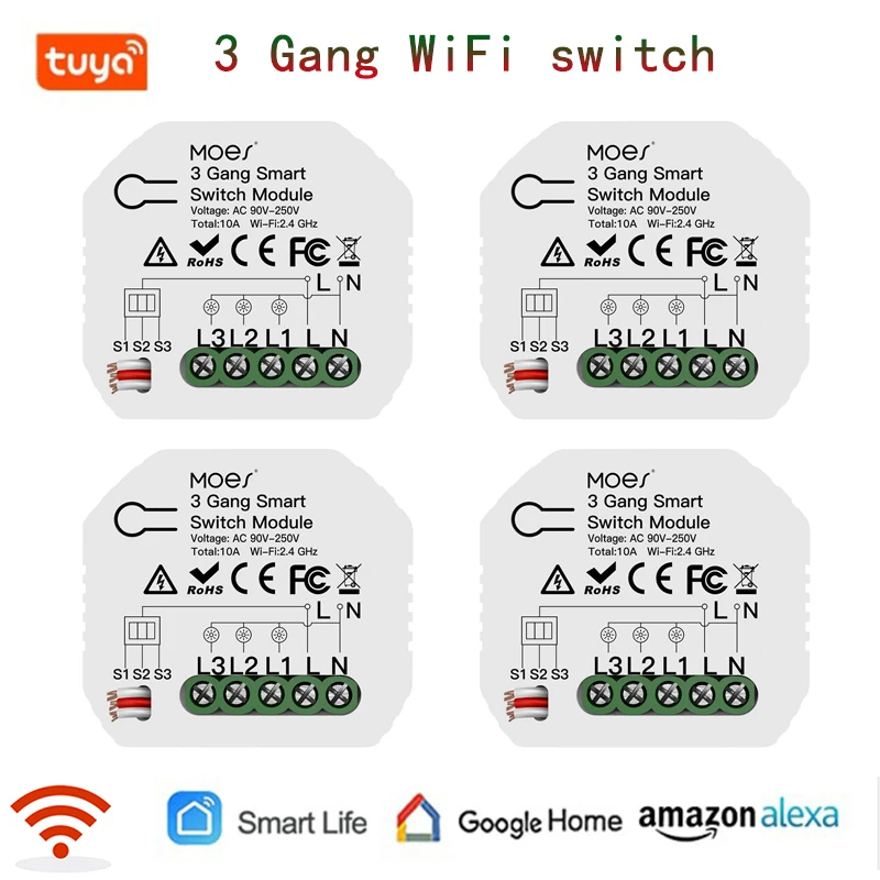 Модуль переключателя света Tuya, Wi-Fi, 3 набора, 12 каналов, миниатюрный модуль переключателя, дистанционное управление, работа с Alexa, Google Home, умная жизнь