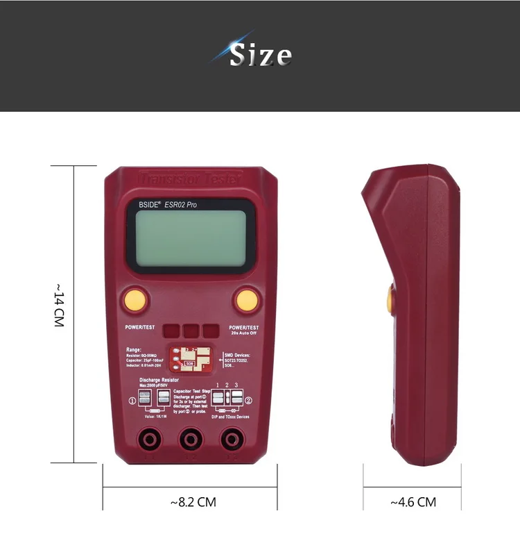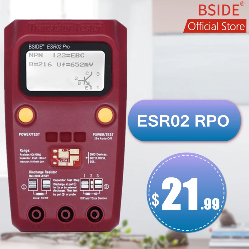 Цифровой транзистор BSIDE ESR02PRO, SMD-тестер компонентов, диодный Триод, емкость, индуктивность, мультиметр