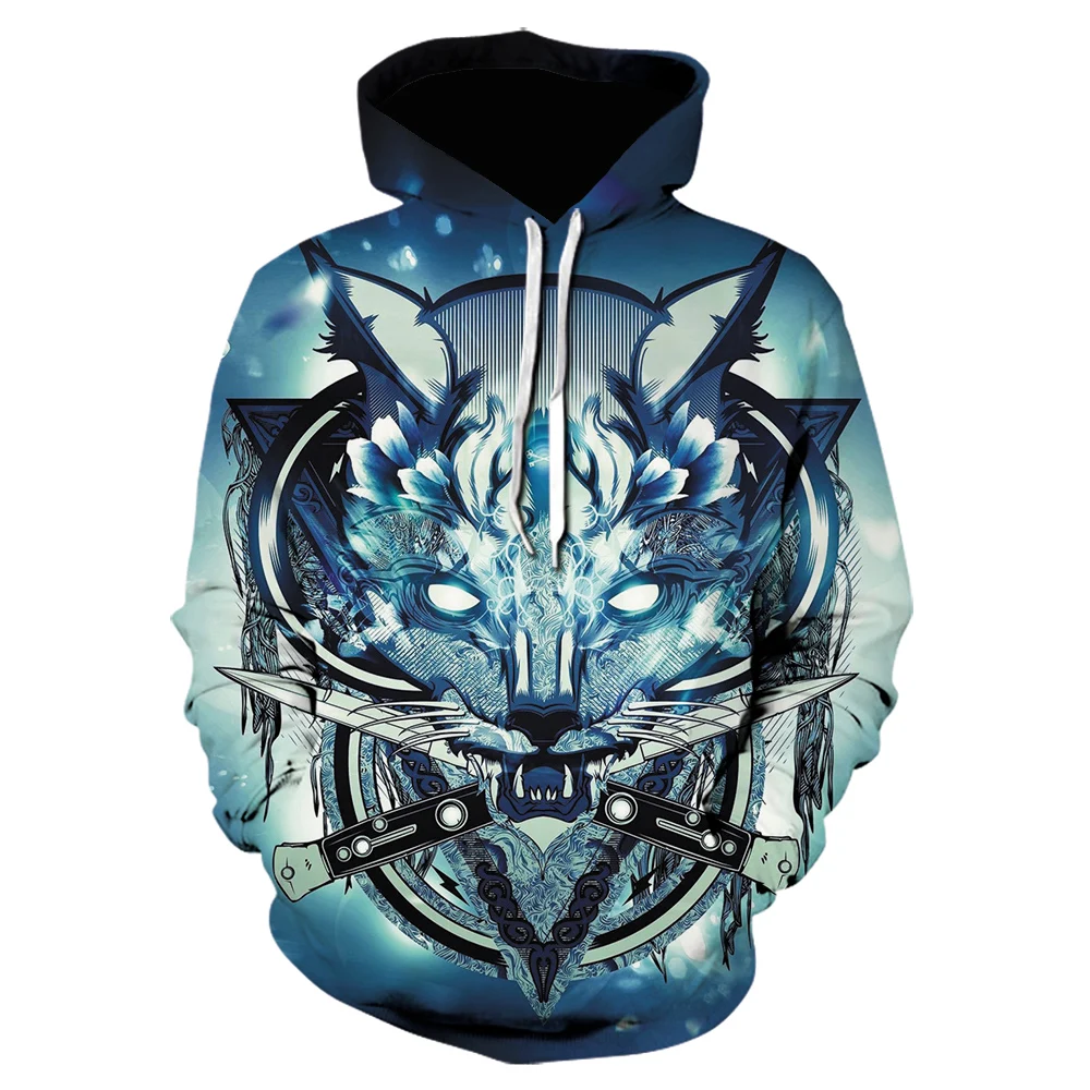 Толстовки мужские и женские с 3D-принтом волка, уличная одежда в ст...
