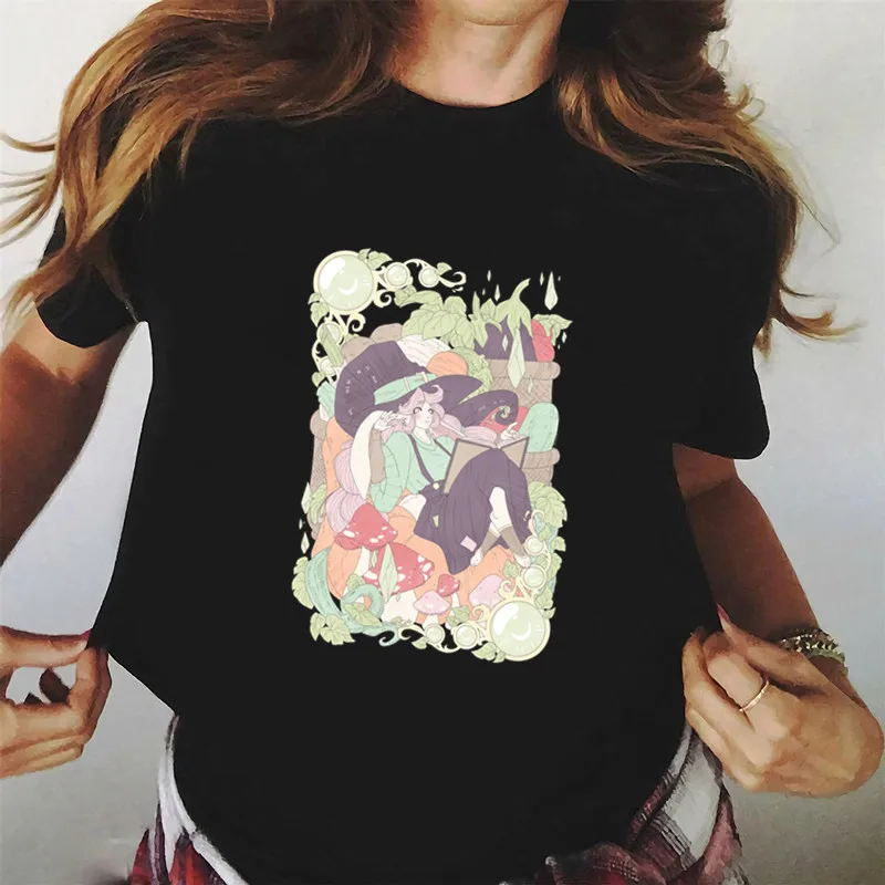 Футболка женская черная с коротким рукавом, в стиле Харадзюку, y2k