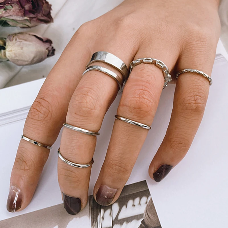 В стиле "хип-хоп" Серебряный Цвет цепи набор колец для женщин обувь для девочек в стиле панк минимализм геометрические Простые Кольца 2021 трендовые ювелирные Вечерние
