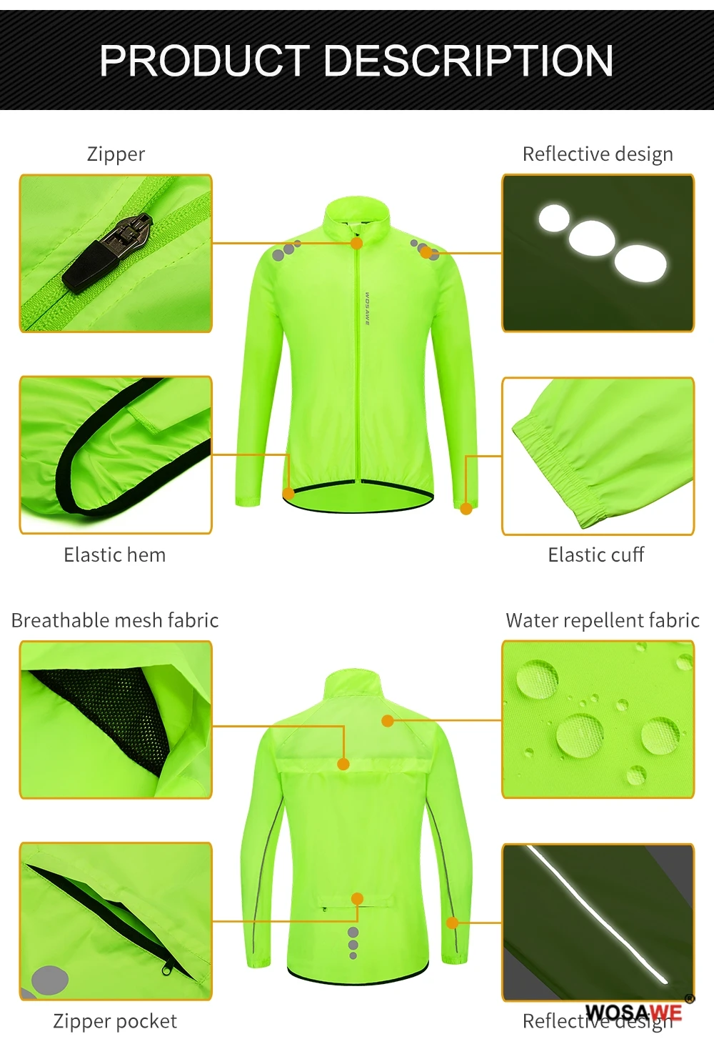 WOSAWE Сверхлегкий Светоотражающие Для Мужчин's велосипедная куртка...