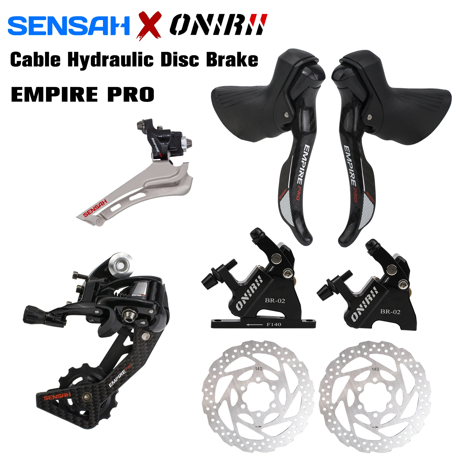 SENSAH EMPIRE 2x1 2-скоростной велосипедный Дорожный комплект из углеродного волокна, групсет 12 В, переключатели передач, переключатель передач, кабель ONIRII, гидравлические дисковые тормозные детали