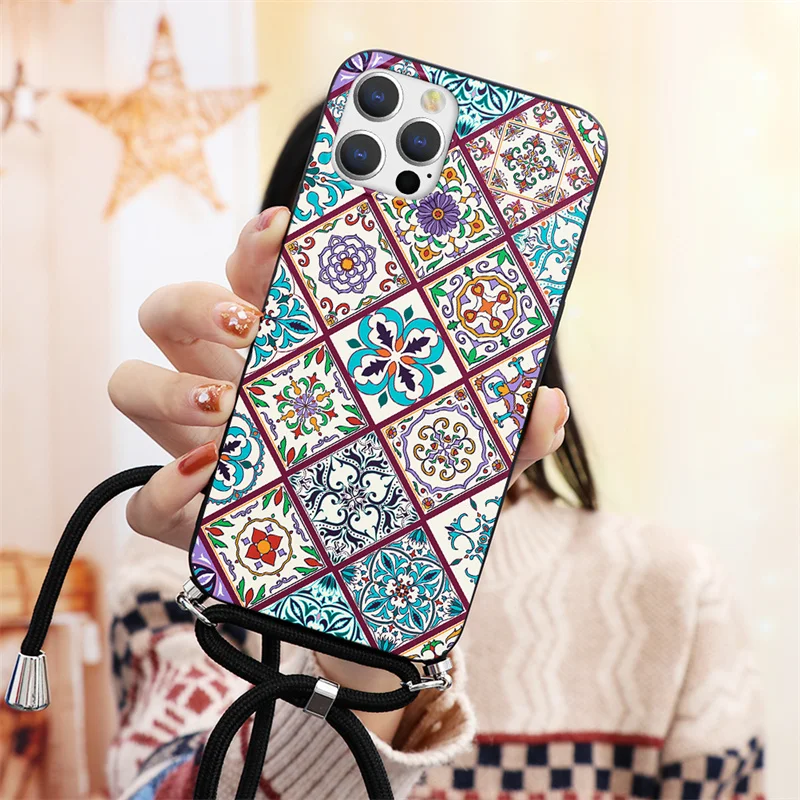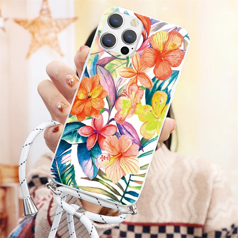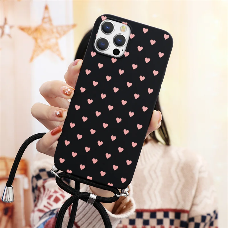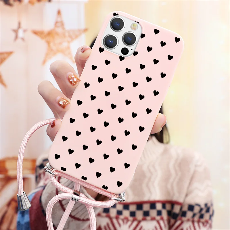 Чехол с ремешком на ожерелье для Apple iPhone 13 11 12 Pro Max Mini 7 8 6 6S Plus XR X XS Max SE 2, мягкий чехол из ТПУ для телефона
