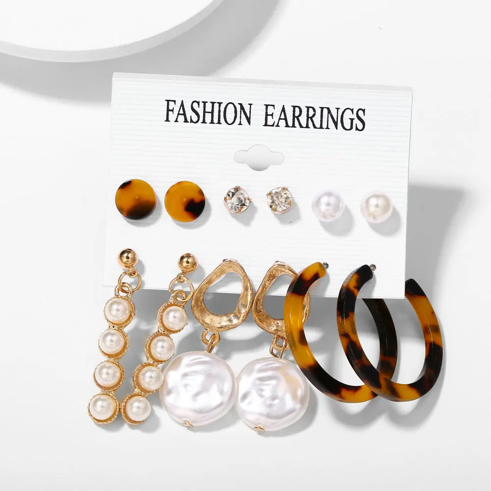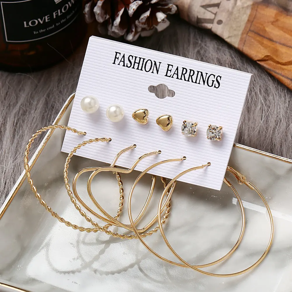6 парупак. модные жемчужные серьги-кольца Комплект сережек для женщин Geometirc Золотой металлический круг смолы серьга в виде кольца Brincos, можно носить с тренд, ювелирное изделие, подарок
