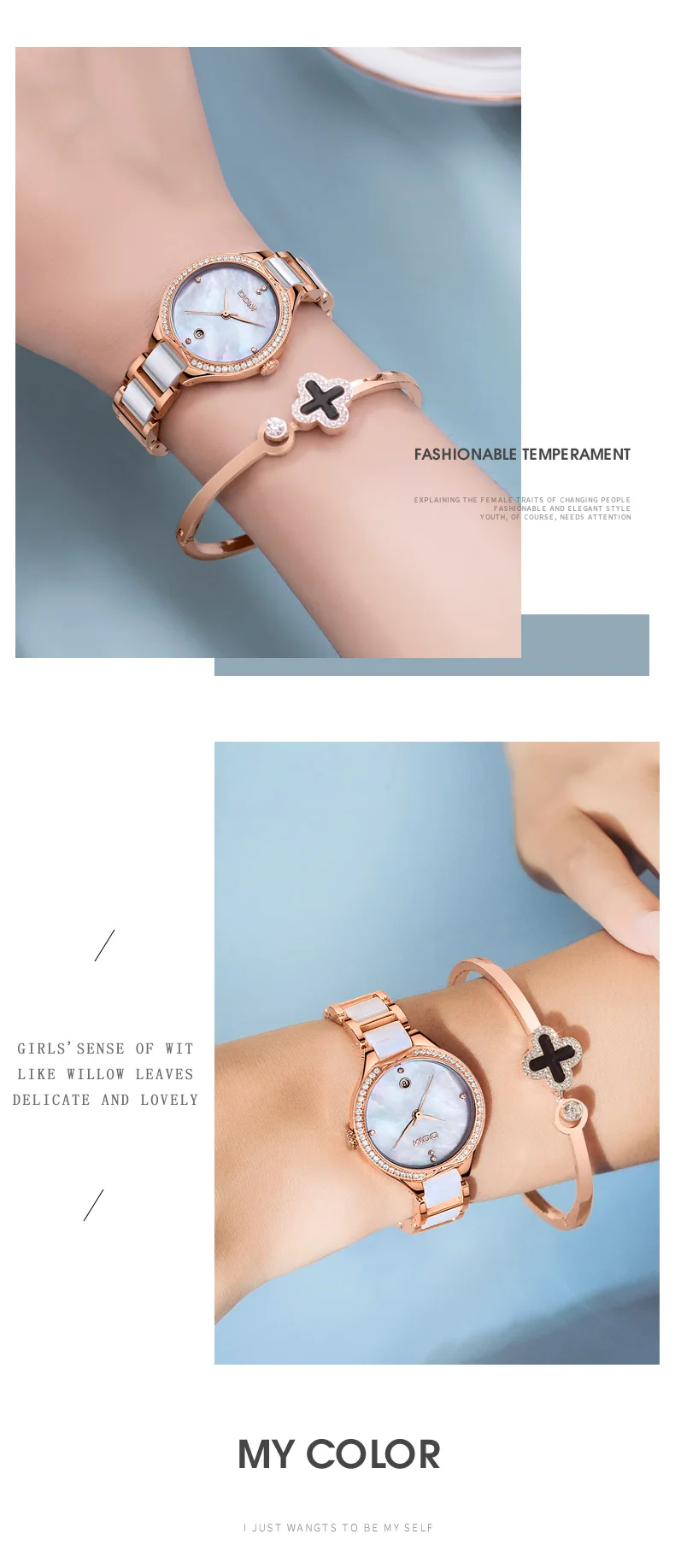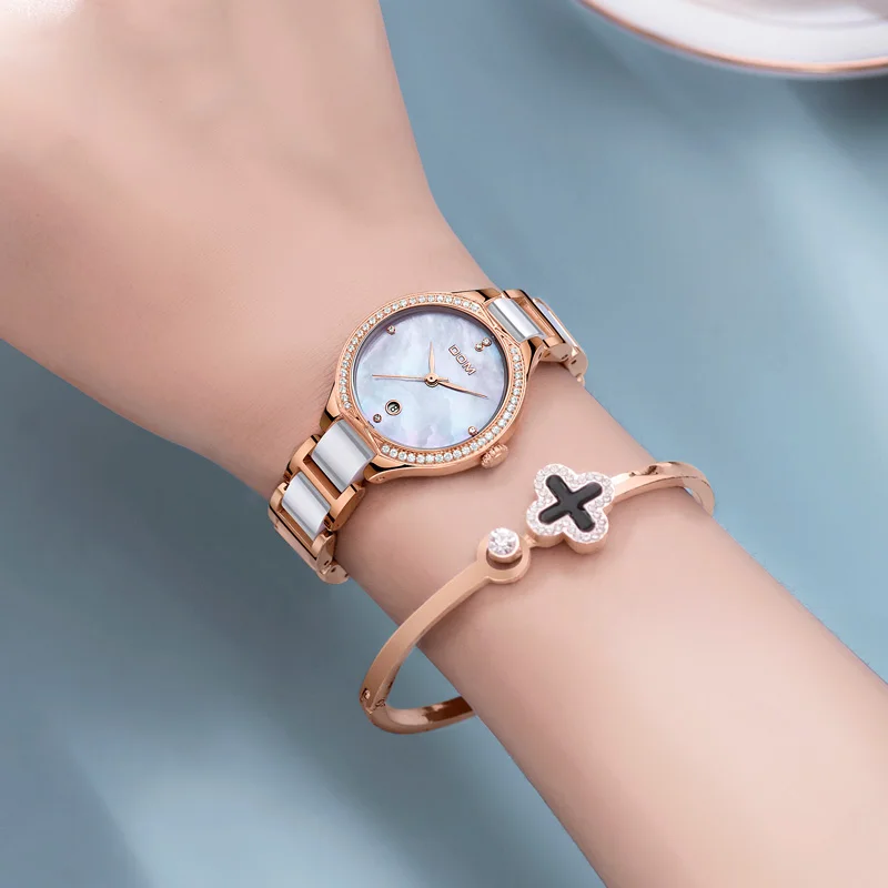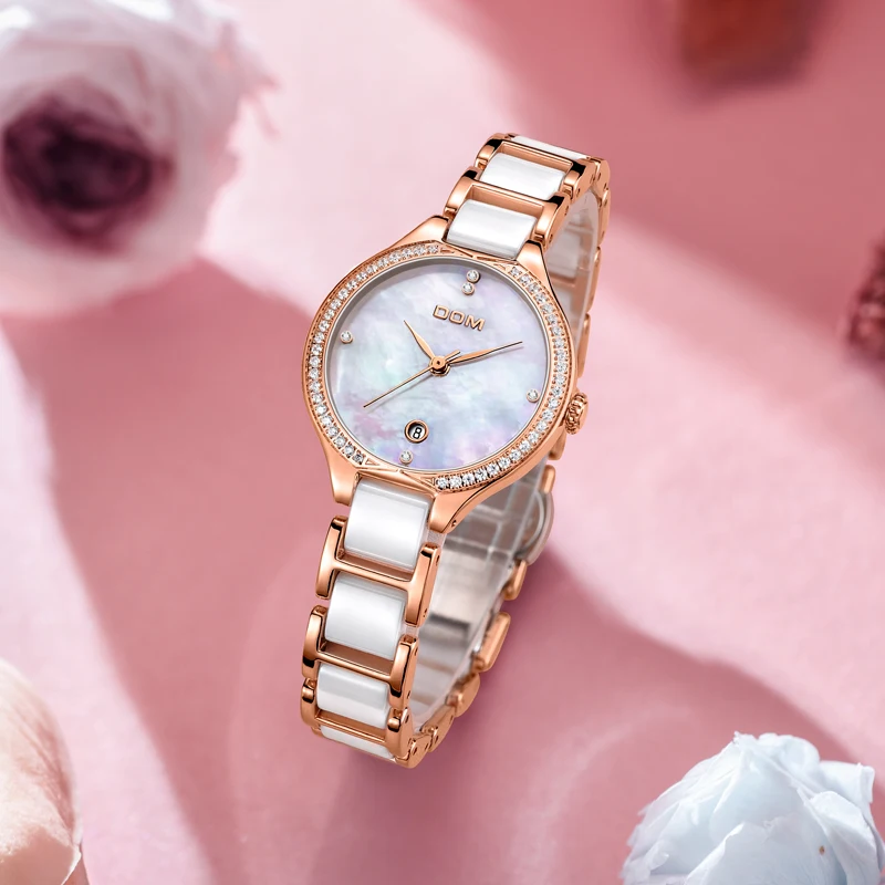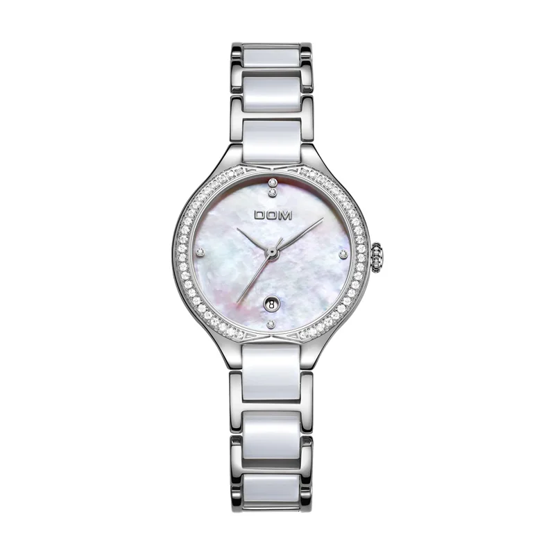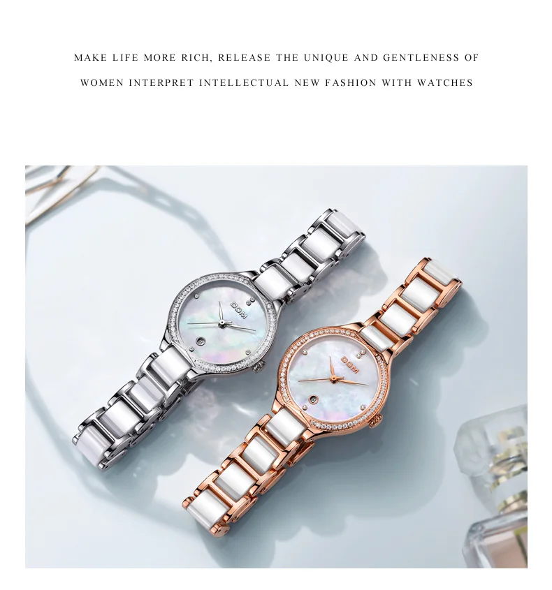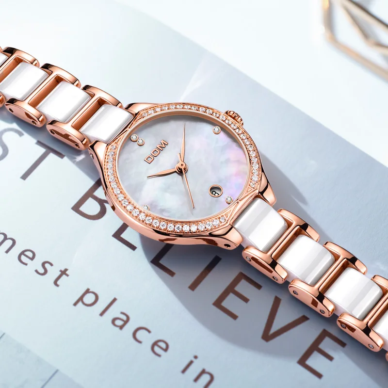 DOM Модные женские наручные часы, керамические наручные часы с бриллиантами, роскошные Брендовые женские кварцевые часы с платьем