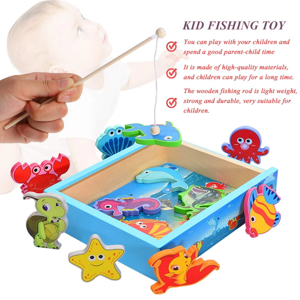 Деревянная рыболовная игрушка, магнитная удочка, Детская рыболовная...