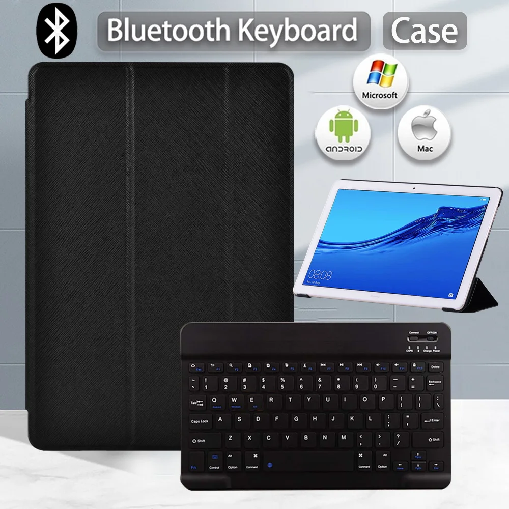 Чехол для планшета Huawei MediaPad T3 10 9,6 дюймаT5 10 10,1 дюйма, складной чехол-подставка из искусственной кожи + Bluetooth-клавиатура + Бесплатный стилус