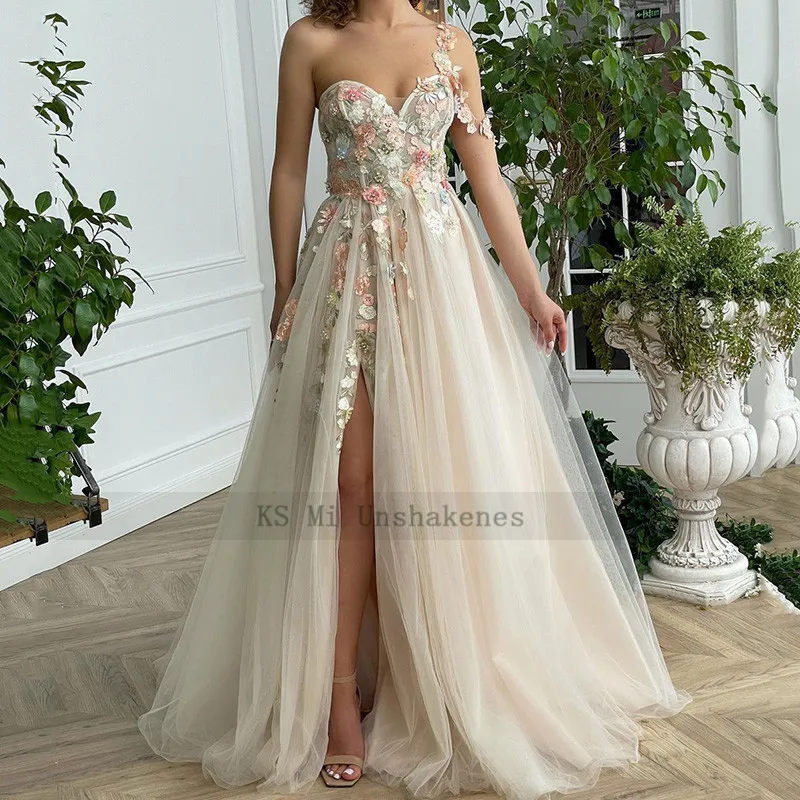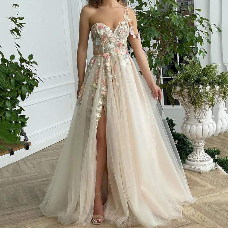 Женское свадебное платье с одним плечом, разноцветное платье цвета шампанского в стиле бохо с разрезом, 2021