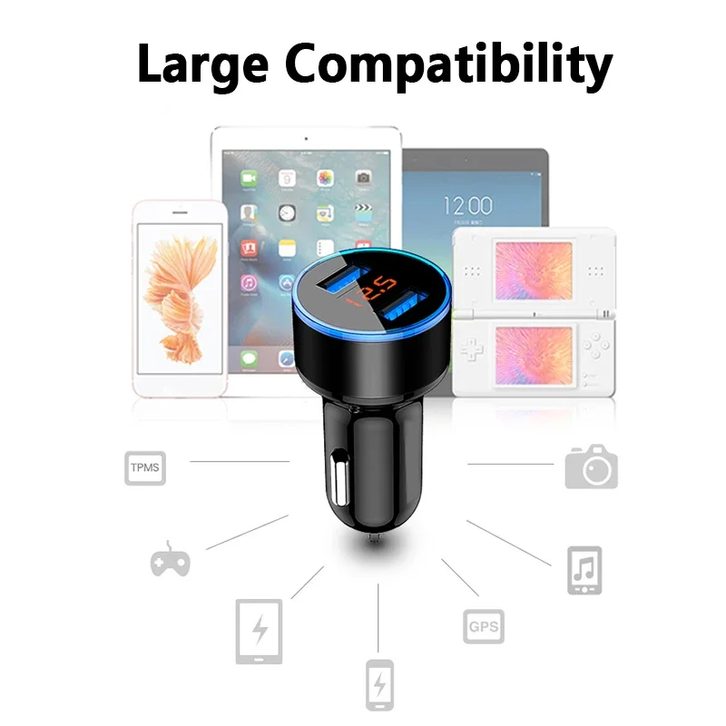 Автомобильное зарядное устройство, светодиодный дисплей с двумя USB...