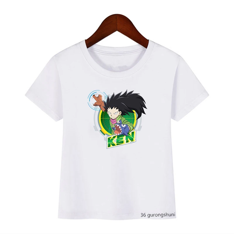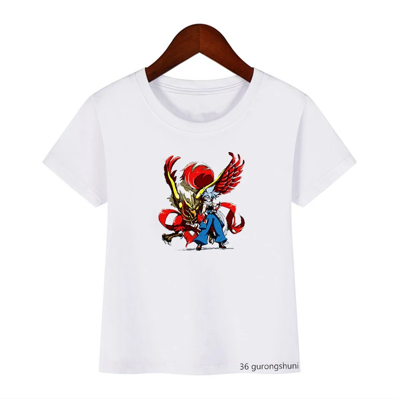 Футболка для мальчиков, белая рубашка с мультяшным японским аниме с...