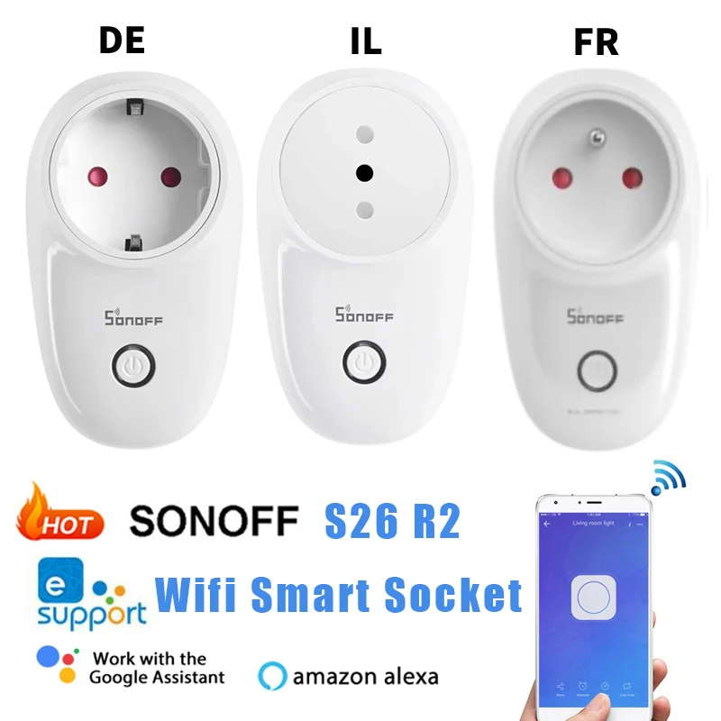 Смарт-розетка Sonoff S26 R2 с поддержкой Wi-Fi и голосовым управлением