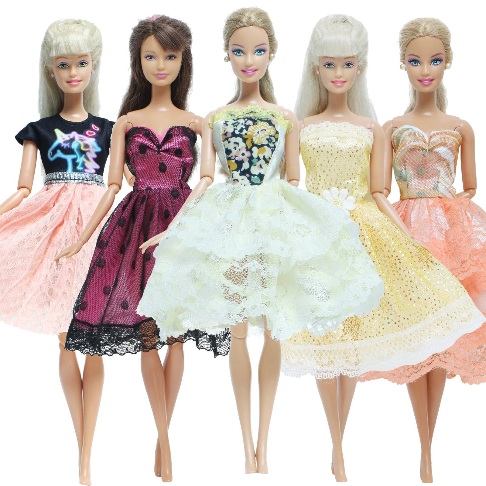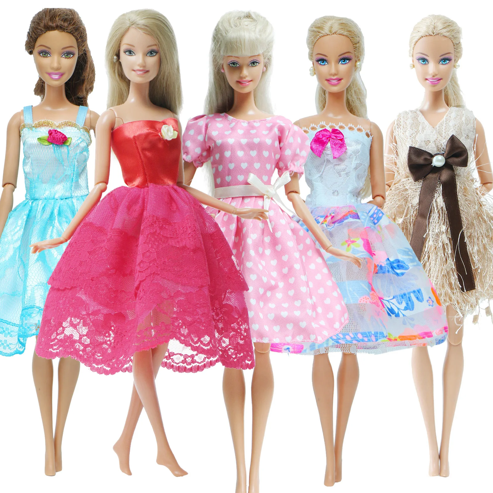 BJDBUS, модное платье для куклы, 5 комплектов, кружевное мини-платье ручной работы, свадебная одежда, юбка, одежда для куклы Барби, аксессуары, детский подарок