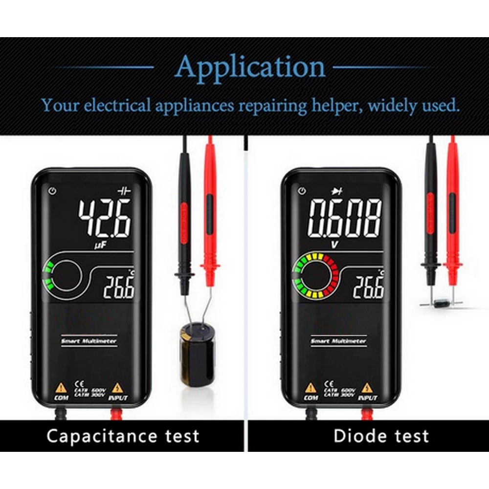 1. Большой цветной экран высокой четкости. 3,5-дюймовым экраном, делает содержание дисплея большой и четкий, таким образом, вам не нужно беспокоиться о том, что его видеть. 2. Автоматический диапазон и автоматическая идентификация. 3. Ультратонкий дизайн, который легко помещается в кармане. 4. Он обладает стабильной производительностью, высокой точностью, высокой надежностью, четким считыванием и защитой от перегрузки. 5. Эта серия инструментов может использоваться для измерения напряжения постоянного тока и напряжения переменного тока, сопротивления, емкости, диодов, температуры, испытания на непрерывность, измерения частоты и истинных RMS. Это превосходный инструмент и идеальный инструмент для лабораторий, фабрик, радио-энтузиастов и семей. Характеристики: Дисплей: 6000 (S7) / 9999 отсчетов. Экран: 3,5 дюймов. DC Напряжение: 0,8 V-620V ±(0.5% + 3); Разрешение: 0,001 V. AC Напряжение: 2,2 V-620V ±(0.5% + 5); Разрешение: 0,001 V. Сопротивление: 1Ω-999.9Ω ±(2.0% + 5); 1k60-60mΩ ±(1.0% + 3); Разрешение: 0.11Ω. Емкость: 1nF-999.9nF ±(6.0% + 5); 1uF-99.99mF ±(3.0% + 3); Разрешение: 0.001nF. Частота: 1 Гц-1000 Гц ±(1.0% + 5) (переменный ток: 2 в-10 В); Разрешение: 0,001 Гц. 1 кГц-60 кГц ±(1.0% + 5) (переменный ток: 10 В-620 в); Разрешение: 0,001 Гц. Рабочий цикл: 0.1%-99.9% ±(3.0% + 5) (переменный ток: 2 в-620 в); Разрешение: 0.1%. Диод: Автоматическое определение диода в тех случаях, когда менее чем 3,0 V. V-оповещение (Бесконтактное Обнаружение напряжения): звуковой сигнал. Проверка в режиме реального времени: звуковой сигнал тревоги, полоса дисплея ЖК-экрана. Непрерывность: если сопротивление менее 30 Ом, звуковой сигнал. Батарея: 2 аккумулятора * AAA батарея (не входит в комплект) Размер посылка: 147*85*42 мм Вес посылка: 180 г Посылка включает в себя: 1 * мультиметр 1 * Тестовый свинец 1 * Руководство пользователя на английском языке1 * упаковочная коробка