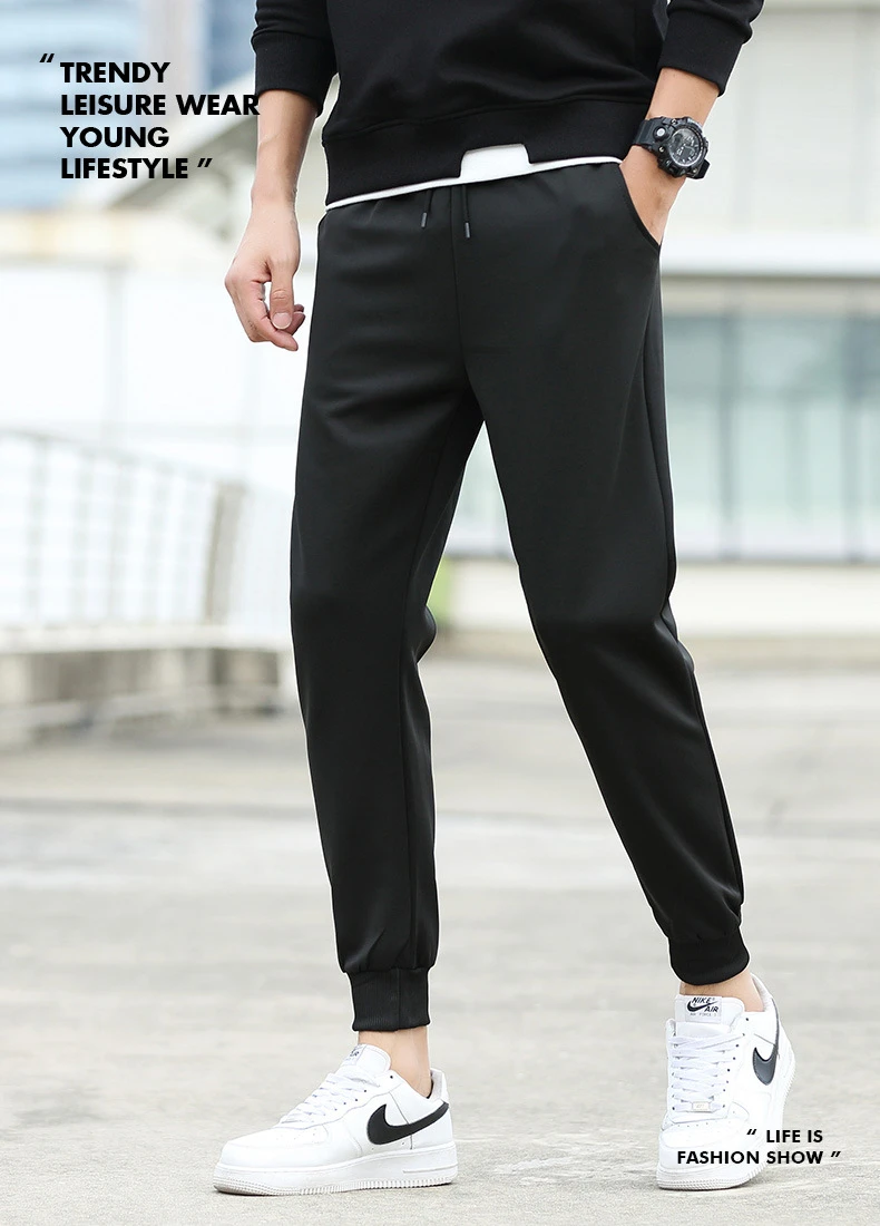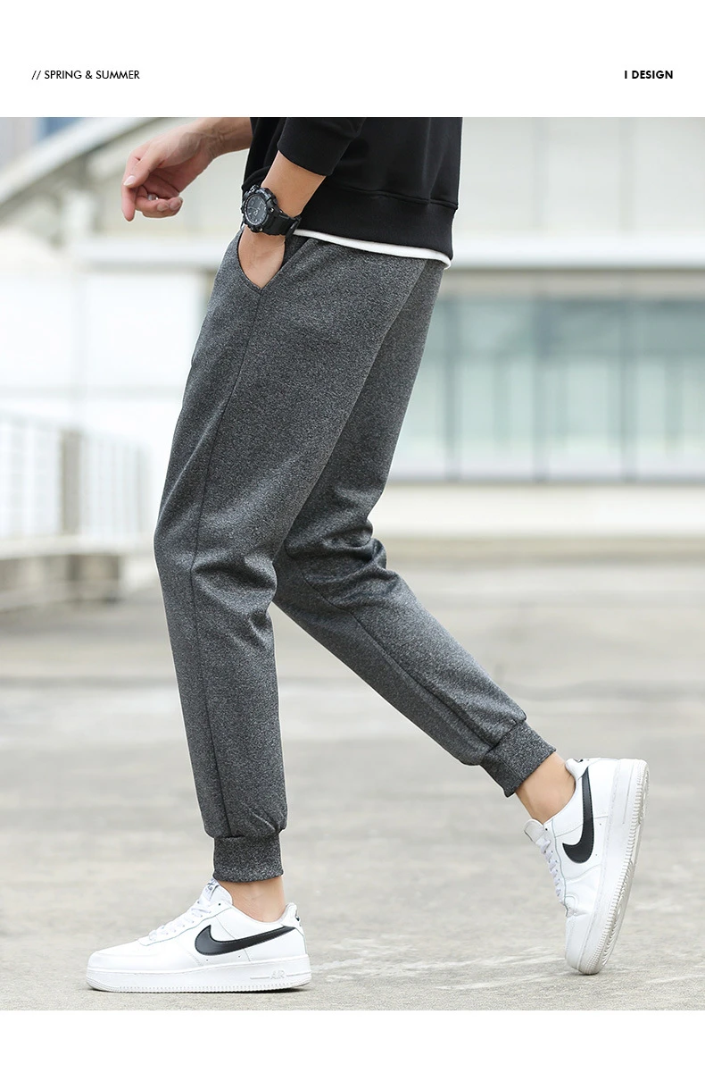 Брюки спортивные мужские льняные, уличная одежда, модные брюки-карандаш, длинные штаны на шнуровке, повседневные