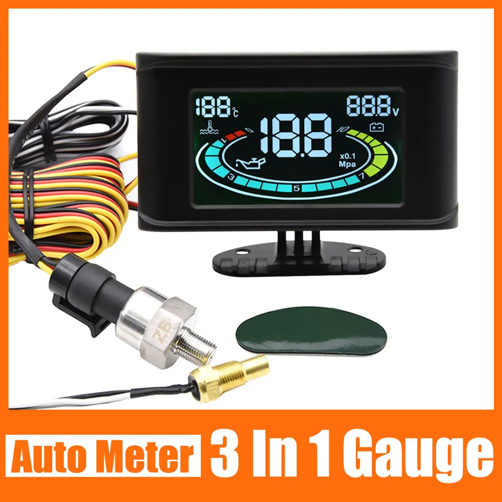 Универсальный ЖК-дисплей 3 в 1, цифровой датчик температуры воды для грузовика, автомобиля, датчик давления масла, вольтметр с датчиком давления масла 10 мм 18 NPT 12 В 24 В